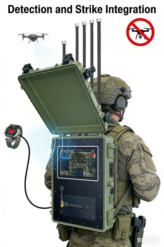 This device is equipped with a 360° all-around monitoring system, capable of scanning and identifying aerial drone targets in real time. Through its advanced radar system and sensors, the device can locate and lock onto multiple drone targets in a short time, providing accurate trajectory data. This allows users to conduct comprehensive strikes from any direction, ensuring that drones cannot escape effective jamming and destruction. Furthermore, the device's real-time monitoring function supports displaying information such as the drone's current position, speed, and altitude, helping users make better decisions.