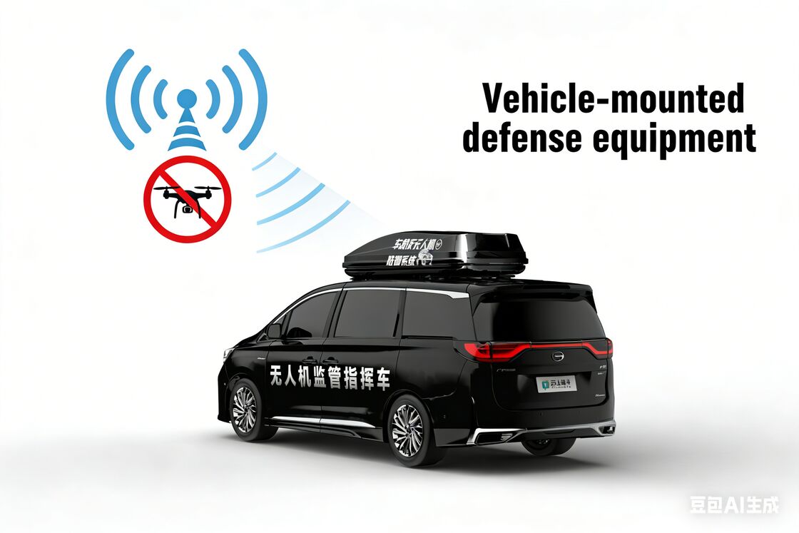 This device highly integrates vehicle navigation and jamming technology, solving the problem of the inconvenience of carrying traditional jamming equipment. Through its compact design, the device can not only be installed on a vehicle platform but also seamlessly interface with vehicle navigation systems, allowing users to easily perform jamming and monitoring while on the move. On the vehicle-mounted platform, the equipment provides precise geolocation capabilities. Combined with a navigation system, it can monitor the electromagnetic signal situation of the surrounding environment in real time, flexibly adjust its operating status, and automatically optimize interference range and frequency bands based on the driving route, improving operational efficiency and ensuring adaptability in various complex environments.