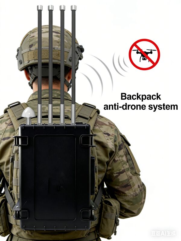 The backpack-style drone defense system integrates three core functions: drone detection, jamming, and decoy. The detection function monitors the airspace in real time through high-precision radar and sensors, immediately triggering an alarm upon detecting a target drone. The jamming function can interfere with drone signals on specific frequency bands, forcing them to lose control and make an emergency landing. The decoy function, on the other hand, guides drones away from the target area by simulating false signals, avoiding any actual threat. The tight integration of these three functions makes the system highly efficient and reliable in complex drone defense scenarios.