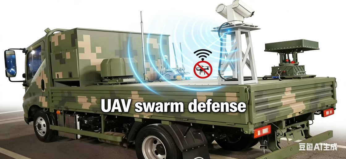This anti-drone swarm defense system is vehicle-mounted, enabling mobile deployment in various geographical environments. The vehicle platform design ensures the system's flexible mobility, allowing the defense network to quickly adjust its location as needed. This mobile defense solution enables the system not only to protect fixed areas but also to be flexibly deployed in battlefields or complex environments to counter swarm drone threats. The defense system integrated into the vehicle platform automatically adjusts its operating parameters based on vehicle speed and driving status, ensuring efficient operation in real-time combat.